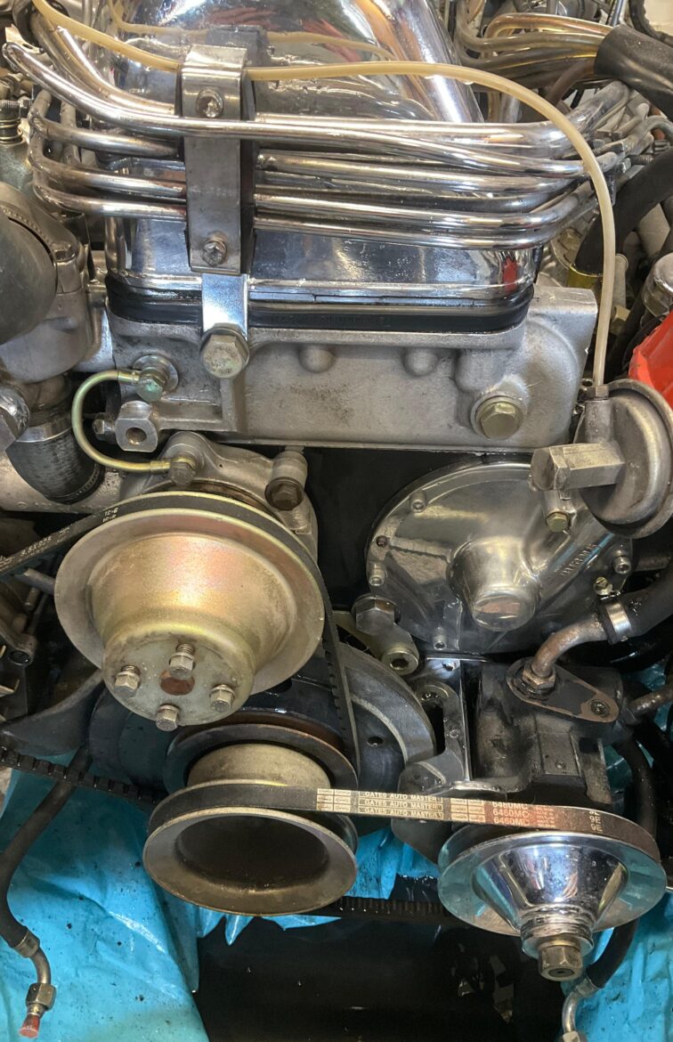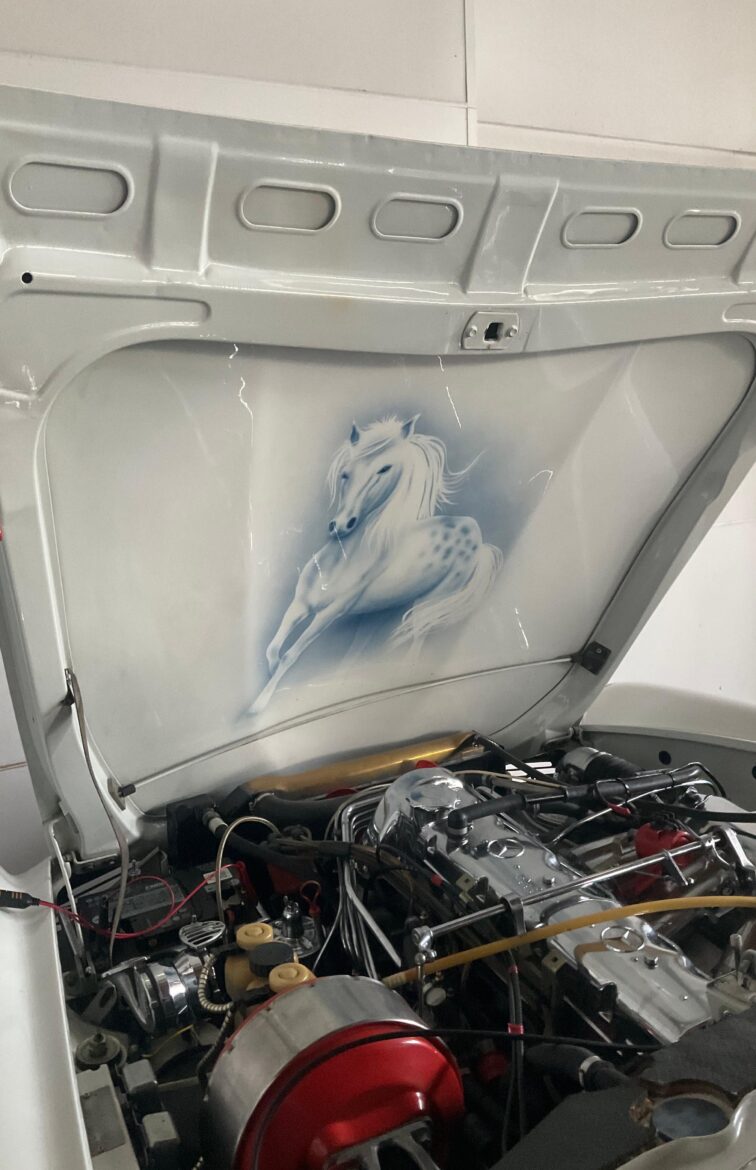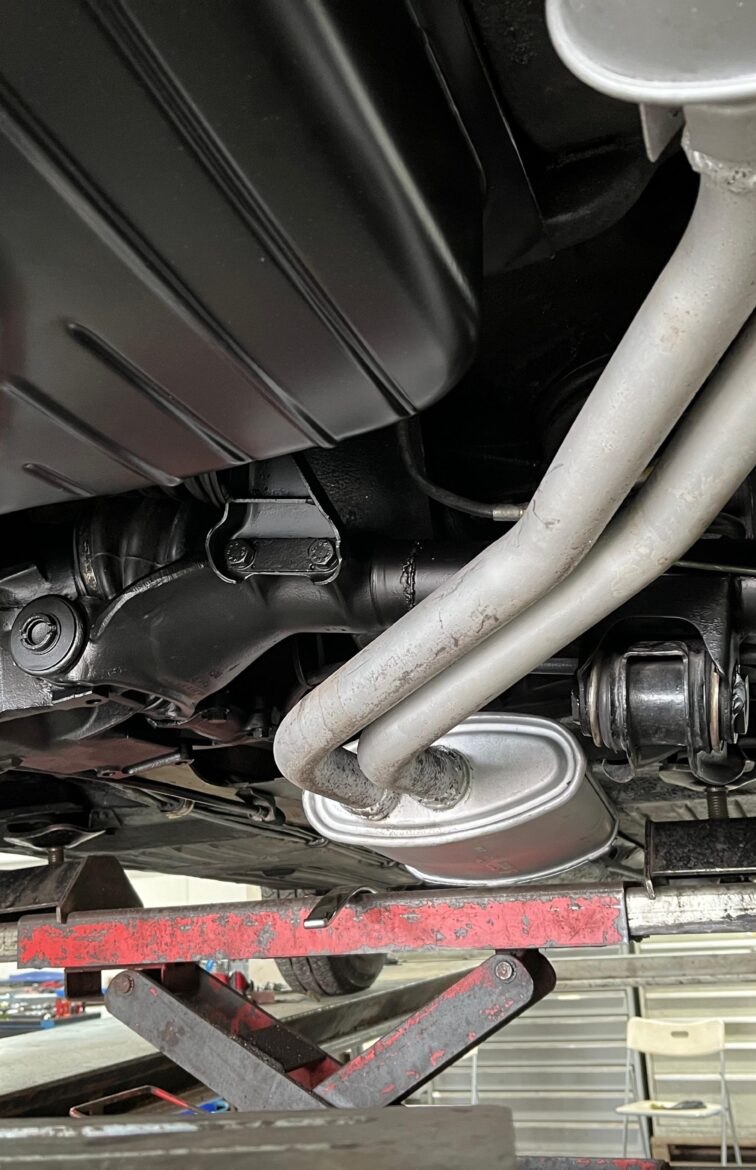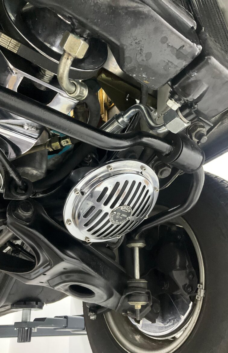 Die Hinterachse, der Tank, diverse Bauteile im Motorraum sowie die Vorderachse wurden vollständig demontiert, gereinigt und anschließend fachgerecht lackiert.
